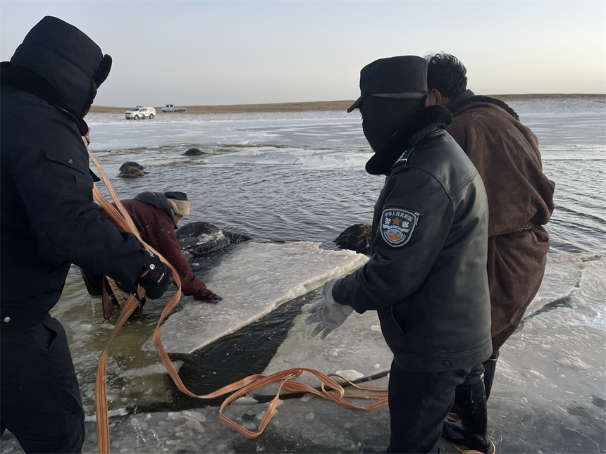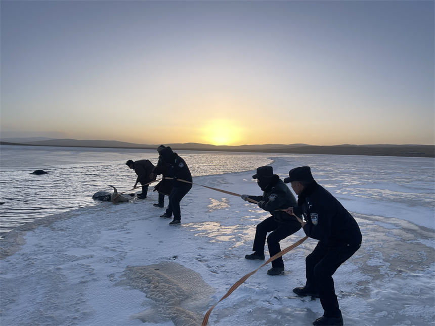 零下20℃ 海拔4300米 警民合力冰湖救牛記!