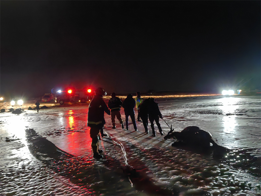 破冰救牛?,敹嗫h公安局野牛溝派出所供圖