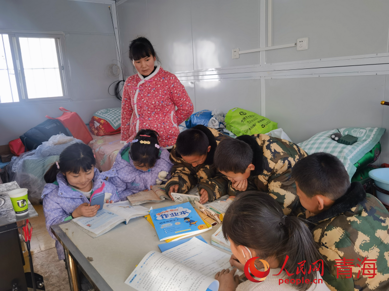 民和縣喇家村安置點(diǎn)孩子們正在上網(wǎng)課。人民網(wǎng) 白波攝