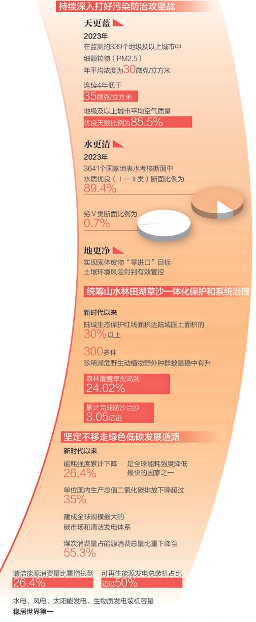 據(jù)統(tǒng)計(jì),2023年,地級(jí)及以上城市平均空氣質(zhì)量?jī)?yōu)良天數(shù)比例為85.5%;全國(guó)地表水水質(zhì)優(yōu)良(Ⅰ—Ⅲ類)斷面比例為89.4%?!傲己蒙鷳B(tài)環(huán)境是最普惠的民生福祉?!睂幭霓r(nóng)林科學(xué)院林業(yè)與草地生態(tài)研究所研究員蔣齊委員說(shuō),經(jīng)過不懈努力,我國(guó)生態(tài)文明建設(shè)取得舉世矚目的成就,萬(wàn)里河山更加多姿多彩。人民群眾切身感受到身邊的生態(tài)環(huán)境不斷改善,享受到越來(lái)越多藍(lán)天白云、綠水青山和潔凈空氣。