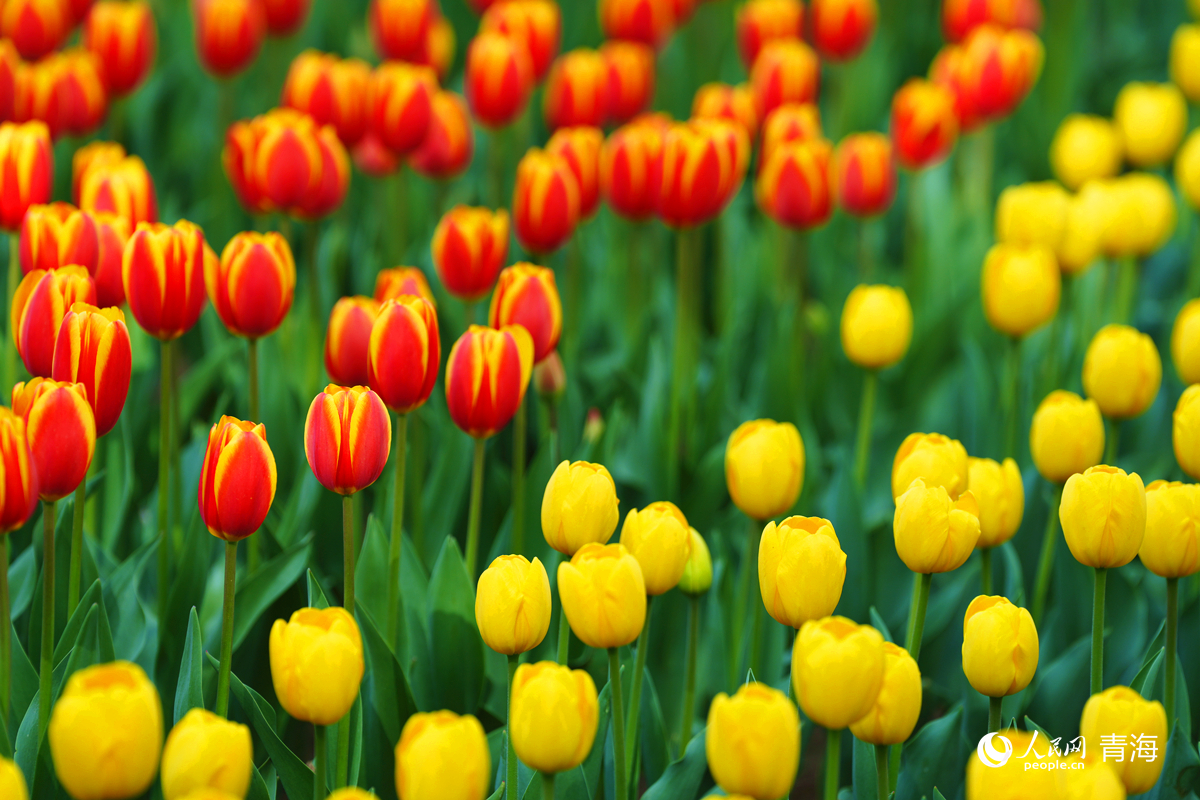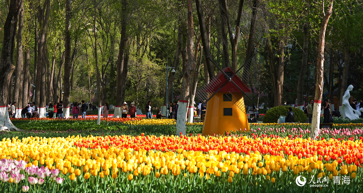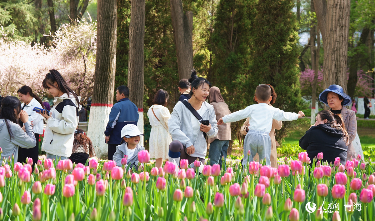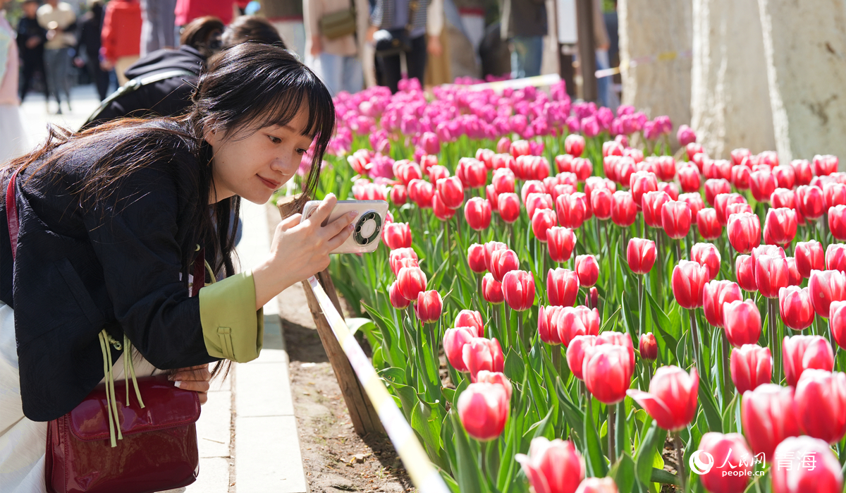 春風(fēng)拂柳,百花爭艷。近日,青海省西寧市人民公園內(nèi)的郁金香競相綻放,引得不少市民及游客駐足觀賞,拍照留念。
