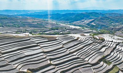 圖為互助縣東山鄉(xiāng)覆膜山間梯田。