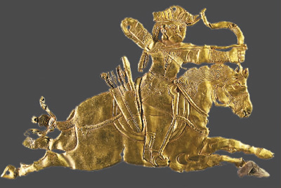 唐吐蕃時(shí)期騎射形金飾片。 青海省海西州民族博物館供圖