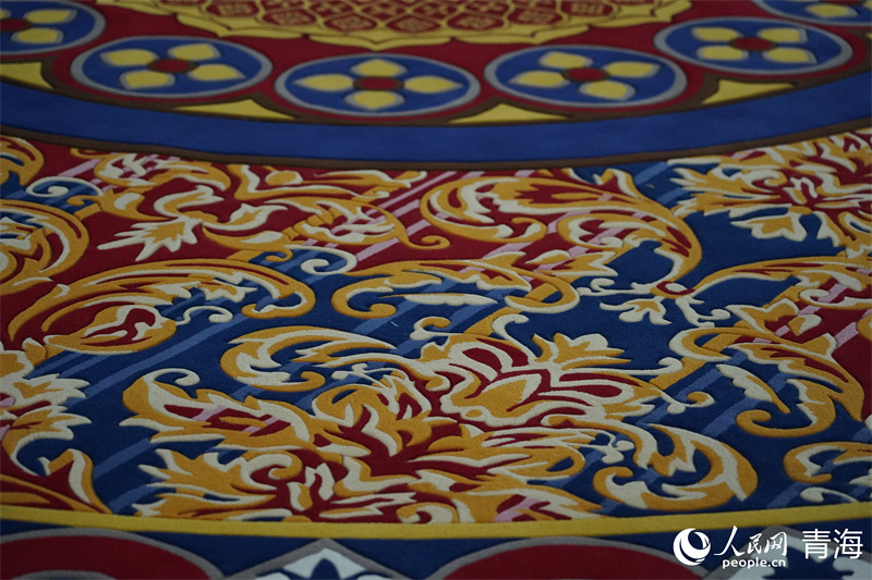 藏毯獨(dú)具特色的花紋。人民網(wǎng) 馬可欣攝