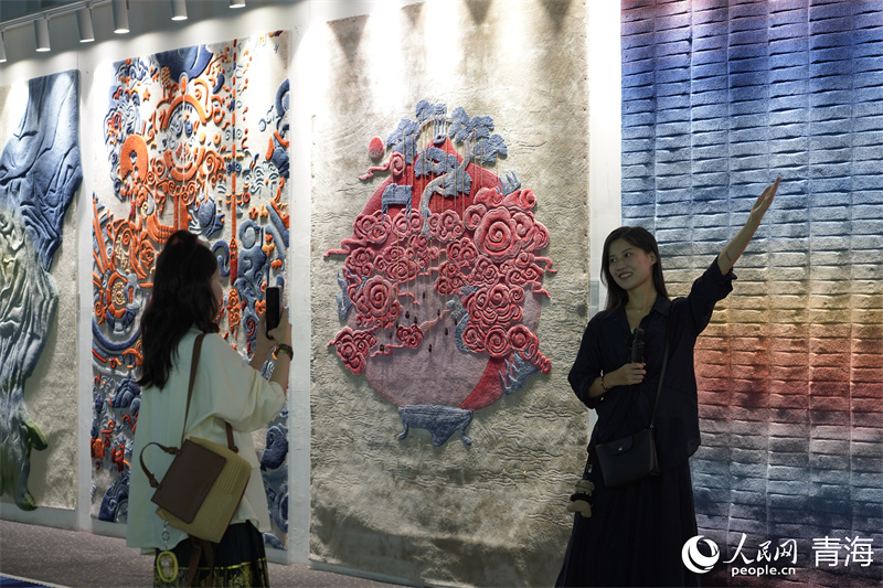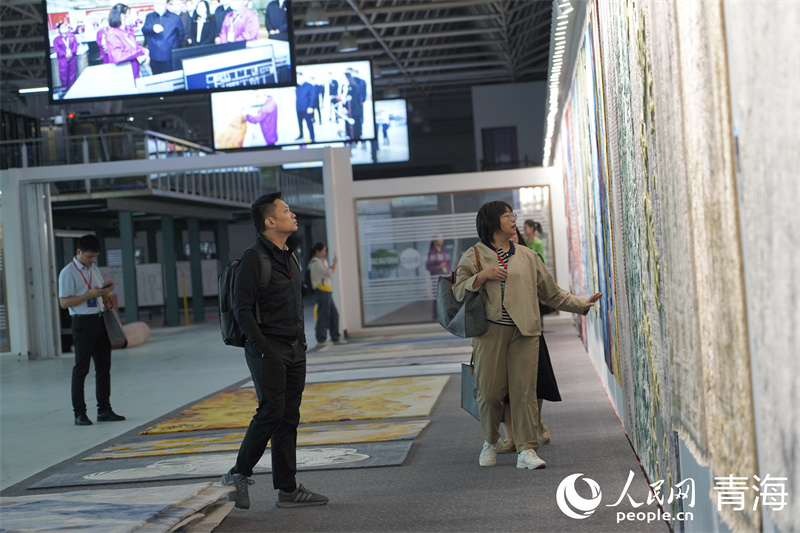 展區(qū)內(nèi)精美的藏毯。人民網(wǎng) 馬可欣攝