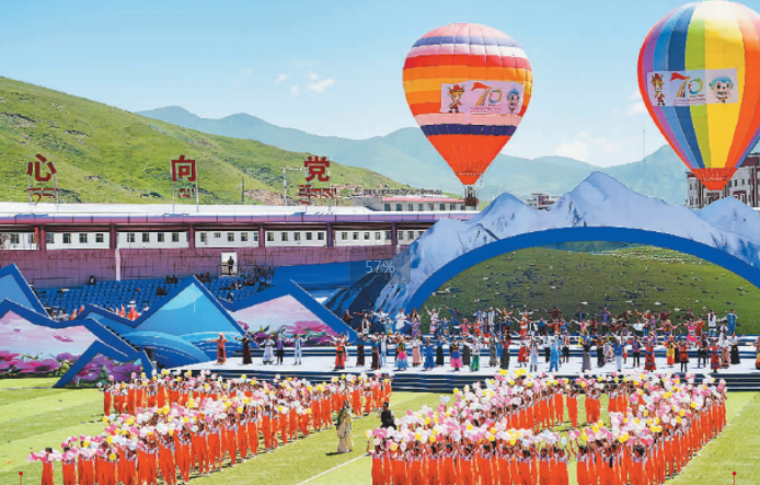 8月4日,青海省果洛藏族自治州成立70周年慶祝大會在瑪沁縣舉行。70年來,果洛州各族兒女高舉中華民族大團(tuán)結(jié)旗幟,鑄牢中華民族共同體意識,各民族像石榴籽一樣緊緊抱在一起,構(gòu)筑了中華民族一家親的精神家園。