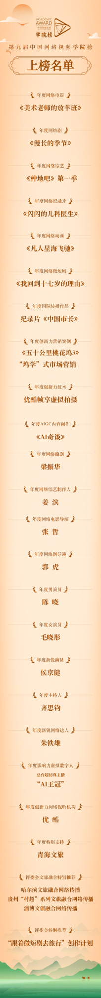 第九屆中國網(wǎng)絡(luò)視頻學(xué)院榜完整榜單。青海省文化和旅游廳供圖