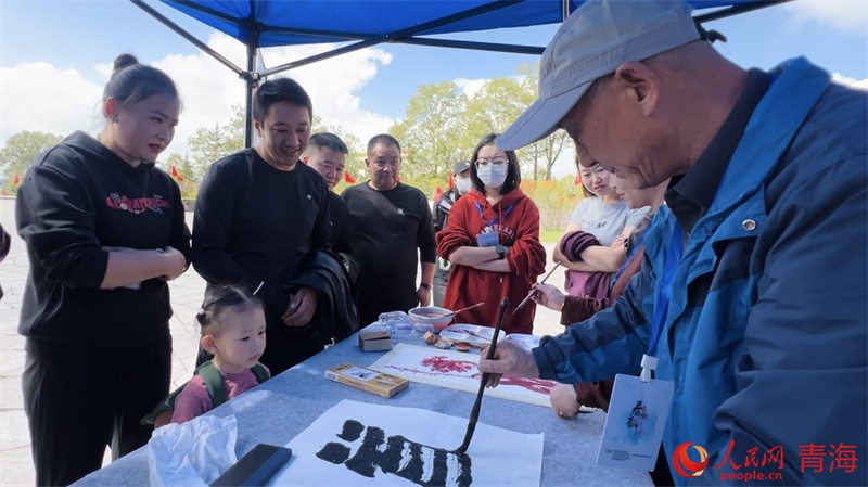 揮毫潑墨,共繪青海大美。在活動(dòng)間隙,書畫家們現(xiàn)場(chǎng)揮毫潑墨,將所見所感融入筆端,創(chuàng)作出一幅幅剛勁有力、意境悠遠(yuǎn)的書畫作品。群眾們圍攏觀賞,對(duì)書畫家們的精湛技藝贊嘆不已,成為活動(dòng)中一道亮麗的風(fēng)景線。