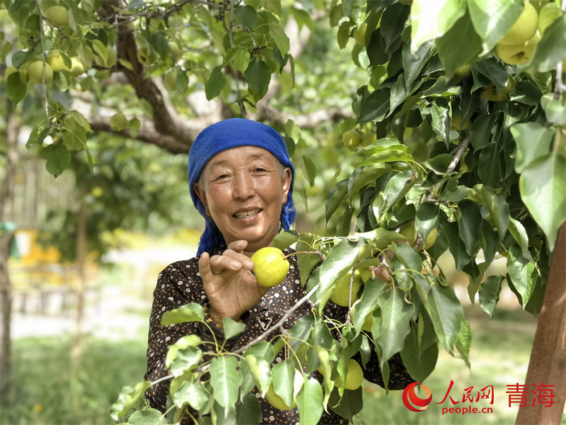 村民先巴在梨樹林中喜笑顏開。人民網(wǎng) 馬可欣攝
