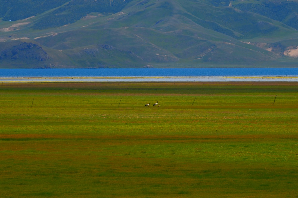 【濕地之美看青?!慷翊爰{濕地的黑頸鶴家庭