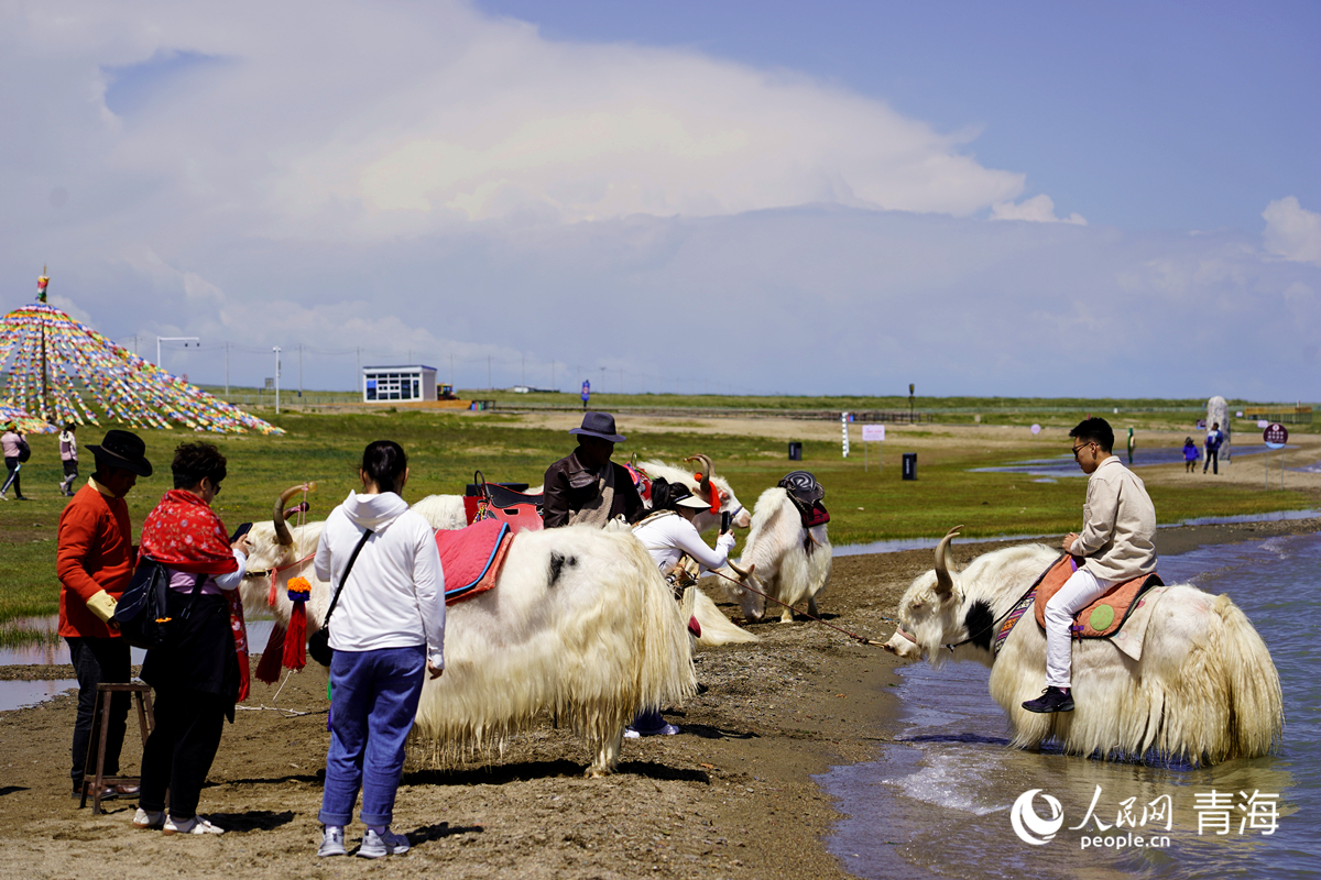 游客在青海湖景區(qū)體驗騎牦牛。人民網(wǎng)記者 甘海瓊攝