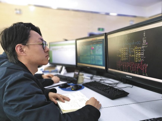 查看電網(wǎng)運(yùn)行情況。青海日?qǐng)?bào)記者 鄭思哲 攝