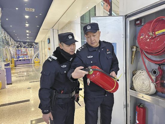 檢查商場(chǎng)消防設(shè)備。青海日?qǐng)?bào)記者 劉祎 攝