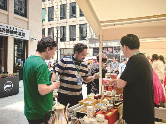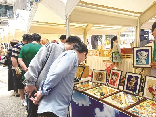 上海市民駐足青海手工藝品攤位前。