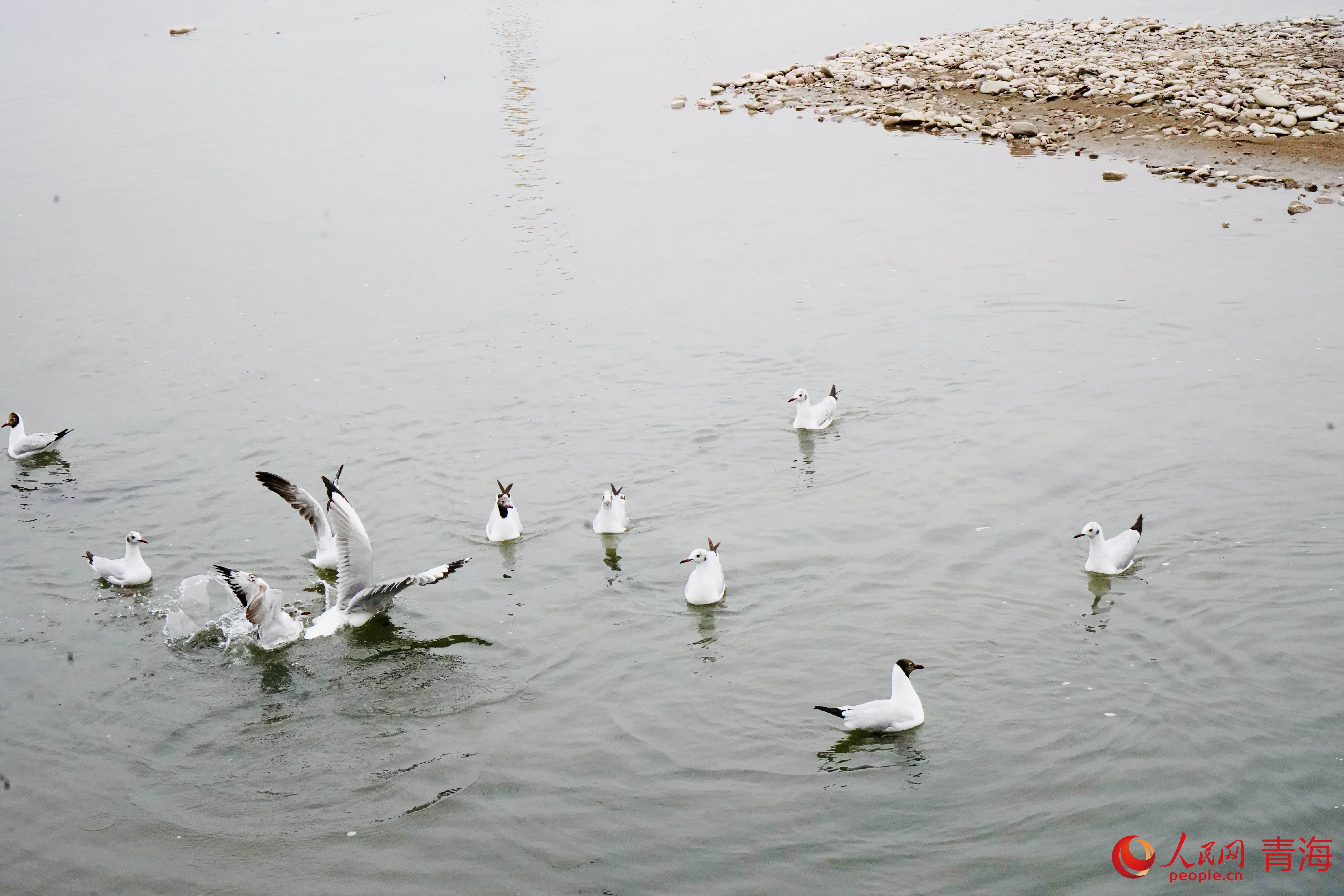 棕頭鷗在水里覓食。人民網(wǎng) 顧斐菲攝