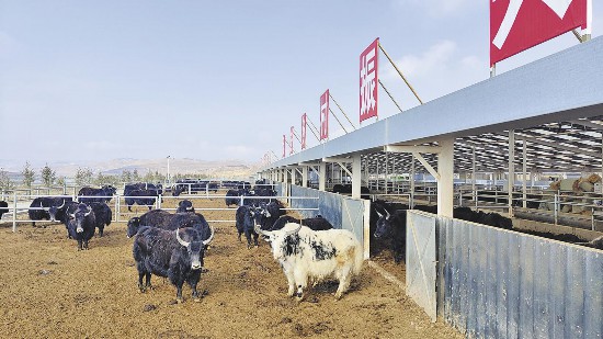 站在洪水泉回族鄉(xiāng)山頂,66棟高標(biāo)準(zhǔn)牦牛養(yǎng)殖棚圈在陽光下熠熠生輝,棚下健壯的牦牛慵懶地曬著太陽,山脊上的田地里飼草正待萌發(fā)新芽。
