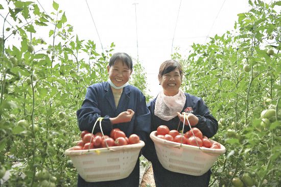 4月22日,在張其寨村農(nóng)業(yè)種植大棚基地,現(xiàn)代化大棚整齊排列,棚內(nèi)飽滿鮮亮的西紅柿長勢正旺,一顆顆“致富果”在藤蔓中垂垂欲墜。
