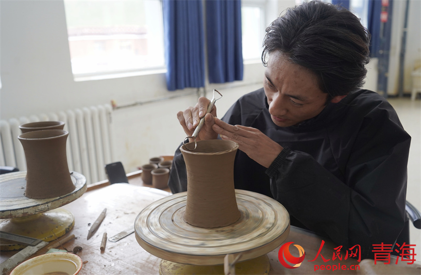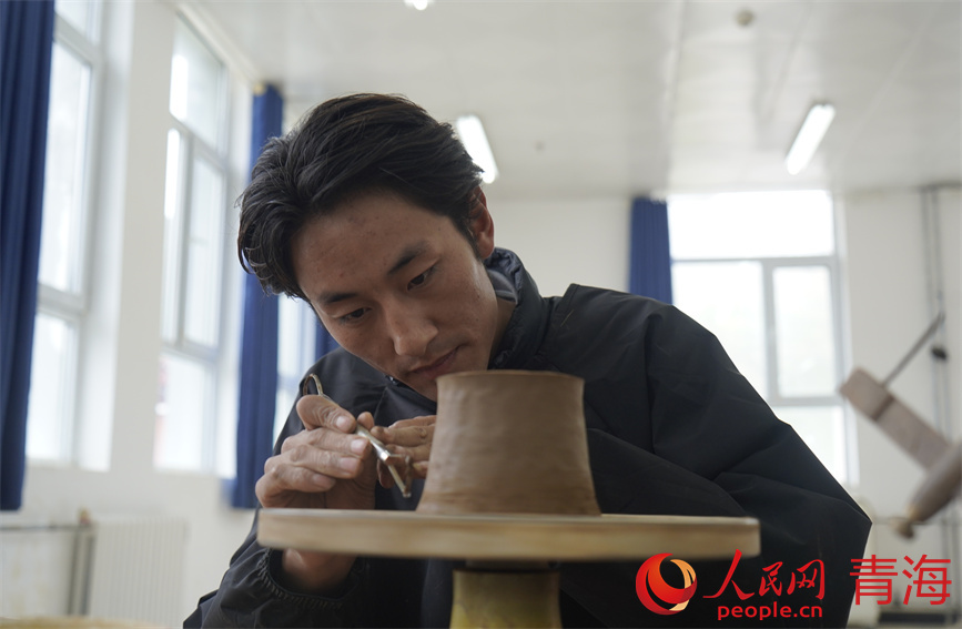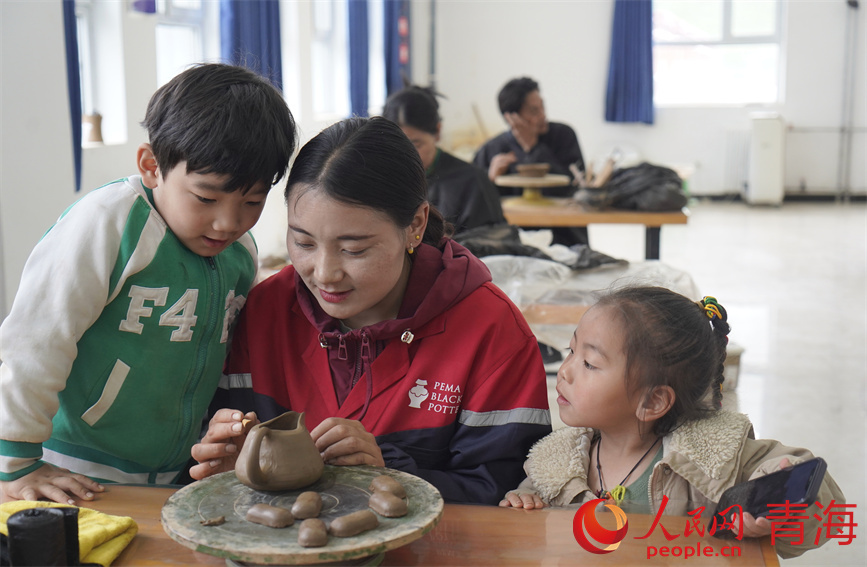 網(wǎng)絡(luò)達(dá)人學(xué)習(xí)制作班瑪黑陶。人民網(wǎng) 顧斐菲攝