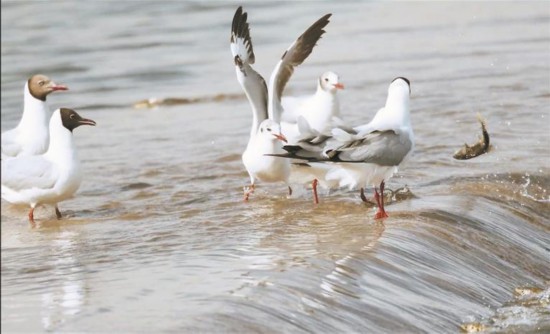 如今,“半河清水半河魚”的盛景年年如約而至,棕頭鷗、普通鸕鶿等水鳥穿梭于水面,繪就了一幅“人魚共棲”“人鳥共樂”“人湖共存”的美麗畫卷。