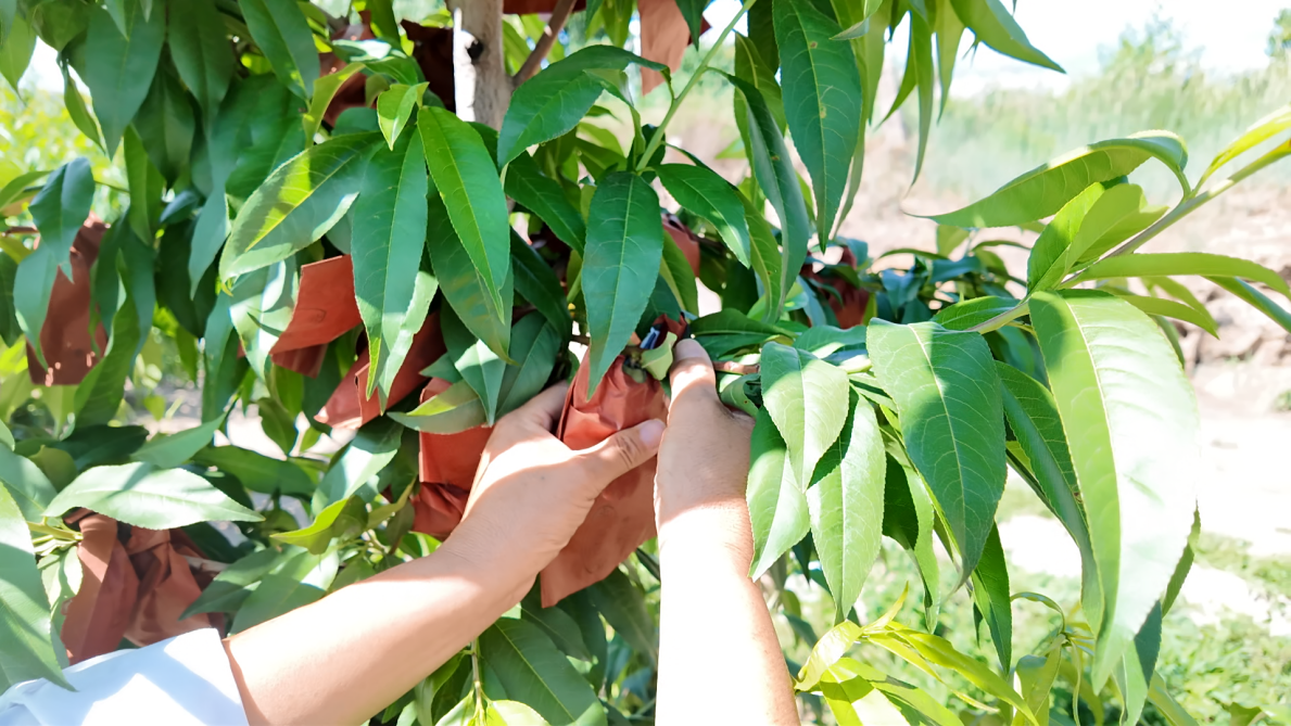 水蜜桃初長成,套袋保護(hù)果實(shí)。許洪攝