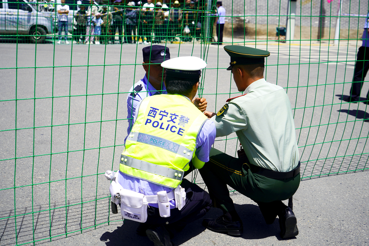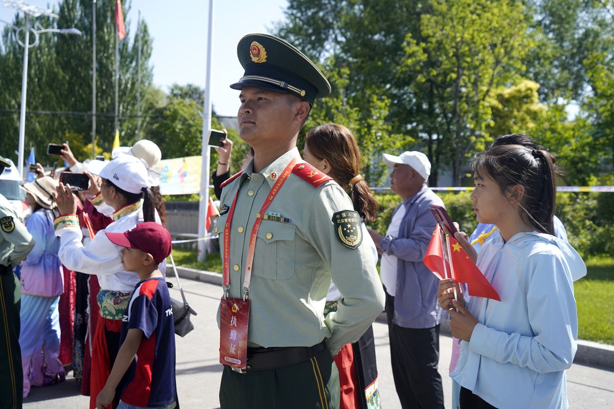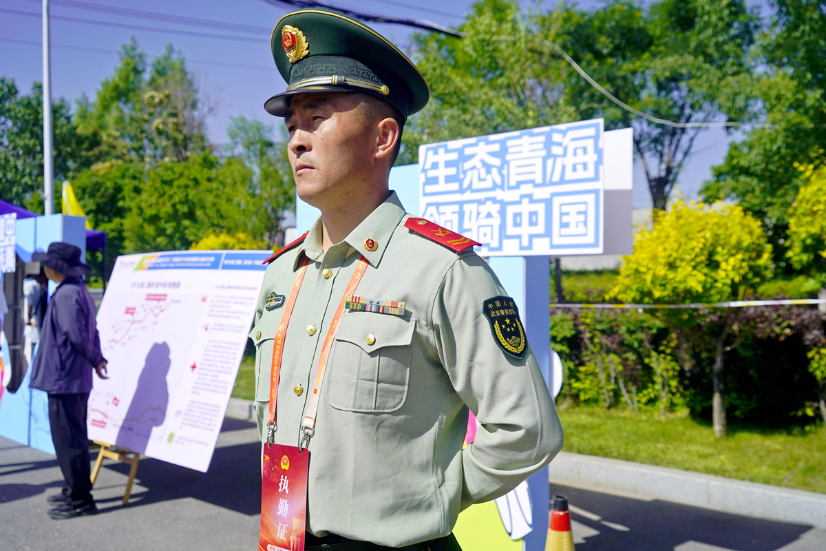 第24屆環(huán)大美青海國際公路自行車賽正如火如荼進行。賽道沿線,武警青??傟牂C動某支隊官兵頂烈日、戰(zhàn)高溫,以嚴整的警容、飽滿的熱情和過硬的作風,筑起一道堅實可靠的安全屏障,確保賽事全程安全順暢。