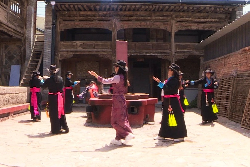 老宅之外,這個(gè)山間村落里藏族、回族、蒙古族、土族鄉(xiāng)親們,仍在延續(xù)著祖輩的生活韻律。炊煙里,糌粑混著酥油奶茶的醇厚;節(jié)日里,鍋莊舞的步伐踏碎斜陽(yáng),長(zhǎng)調(diào)掠過(guò)山崗。婦女們穿著鑲邊的民族服飾穿梭巷道,衣襟上的銀飾叮當(dāng)作響,這些活態(tài)的民俗,讓傳統(tǒng)村落不僅是建筑的標(biāo)本,更是文化的呼吸。