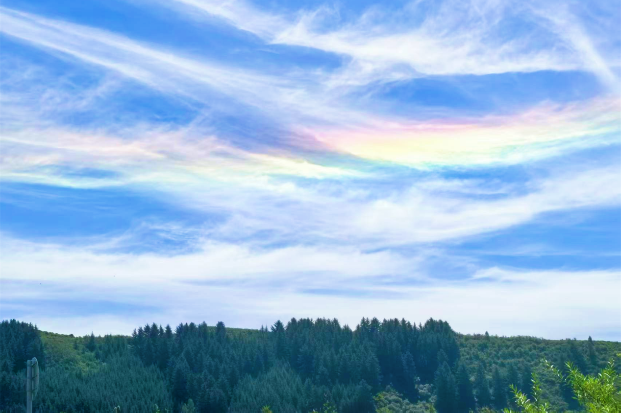 人民網(wǎng)西寧8月1日電 (馬可欣)7月30日中午12時(shí),青海省西寧市大通回族土族自治縣向化鄉(xiāng)的天空中出現(xiàn)罕見(jiàn)美景——絢麗的“七彩祥云”緩緩舒展,宛如天幕上暈染的油畫(huà)。這一奇觀引得當(dāng)?shù)鼐用窦娂婑v足觀賞拍照。 據(jù)悉,這次出現(xiàn)的“七彩祥云”持續(xù)時(shí)間長(zhǎng)達(dá)近20分鐘。