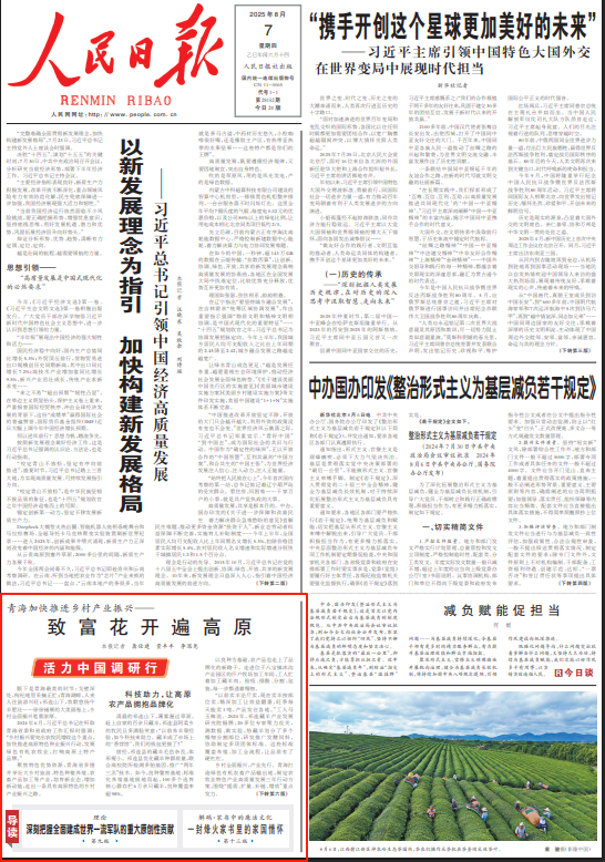人民日?qǐng)?bào)頭版關(guān)注青海 | 致富花開遍高原