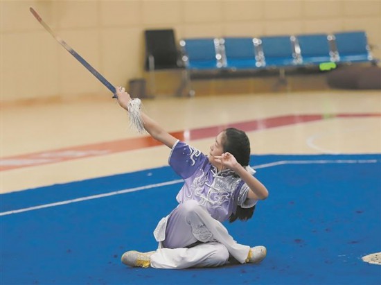 8月4日,海東市第二屆武術(shù)套路精英賽少年甲組傳統(tǒng)套路(器械)比賽現(xiàn)場(chǎng)。通訊員 石延壽 攝
