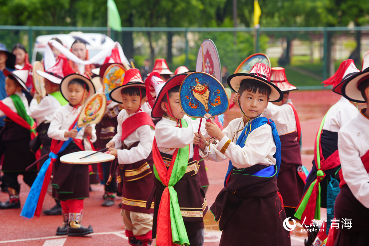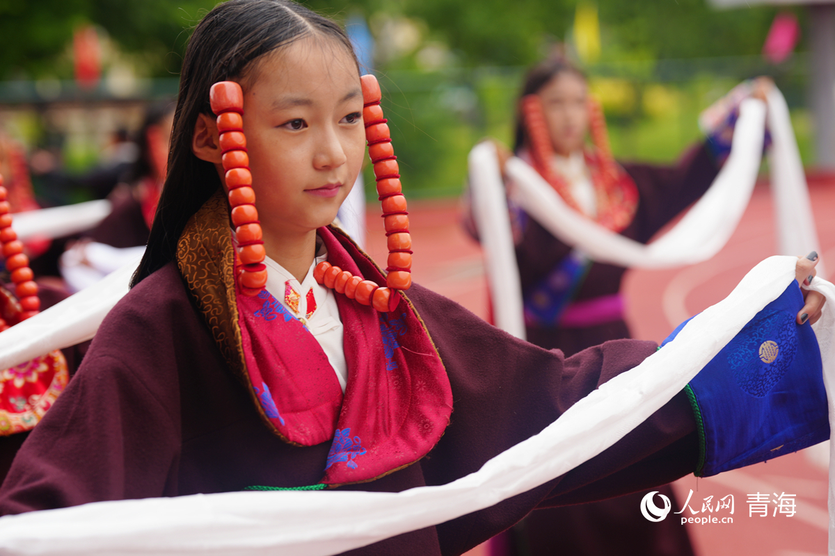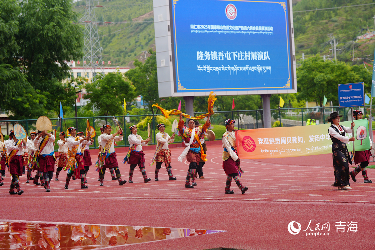 同仁市各鄉(xiāng)鎮(zhèn)表演隊伍入場表演。人民網(wǎng)記者 楊啟紅攝