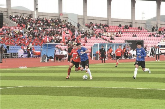 比賽接近尾聲,雙方球員在體能上均有所下降。面對(duì)比分落后的局面,果洛格薩爾隊(duì)的球員發(fā)起了多次進(jìn)攻,但都被海南龍羊隊(duì)化解。比賽第90分鐘,海南龍羊隊(duì)27號(hào)球員萬(wàn)瑪才旦憑借與隊(duì)友的精彩配合,將球推入果洛格薩爾隊(duì)的球門。不久,主裁判吹響了終場(chǎng)結(jié)束的哨聲,果洛格薩爾隊(duì)1∶3不敵海南龍羊隊(duì)。