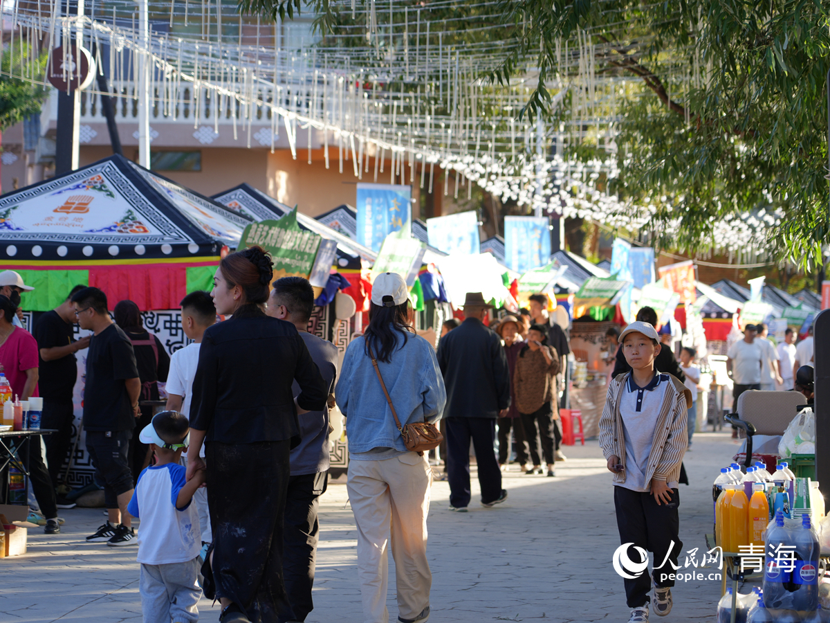 隆務(wù)老街人頭攢動。人民網(wǎng)記者 楊啟紅攝