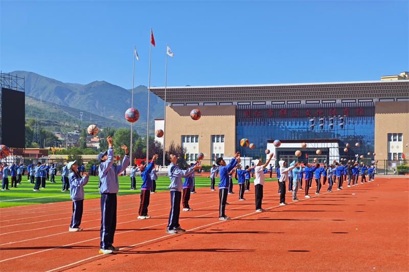 在黃南州體育場(chǎng),小演員們正有條不紊地排練著開(kāi)幕式的演出節(jié)目。大家一次又一次地完善表演動(dòng)作和演出陣形,只為呈現(xiàn)出最好的表演效果。