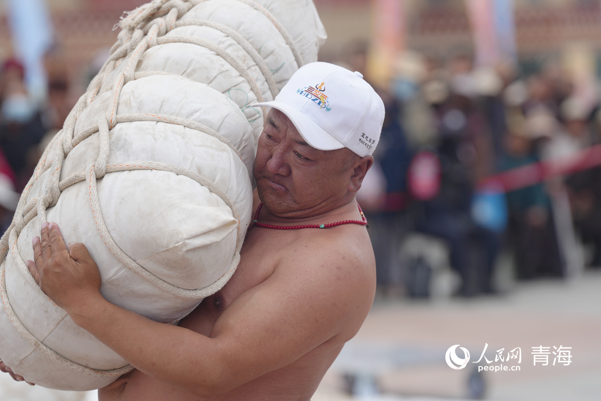 舉沙袋是少數(shù)民族傳統(tǒng)體育運(yùn)動會的重要項目之一。藏族群眾在生產(chǎn)生活中需扛起重物放到牛鞍、馬鞍上,逐漸演變出這項運(yùn)動。(楊啟紅、陳晶、實習(xí)生孟啟昇)