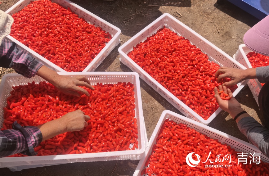 枸杞鮮果分揀。人民網(wǎng)記者 甘海瓊攝