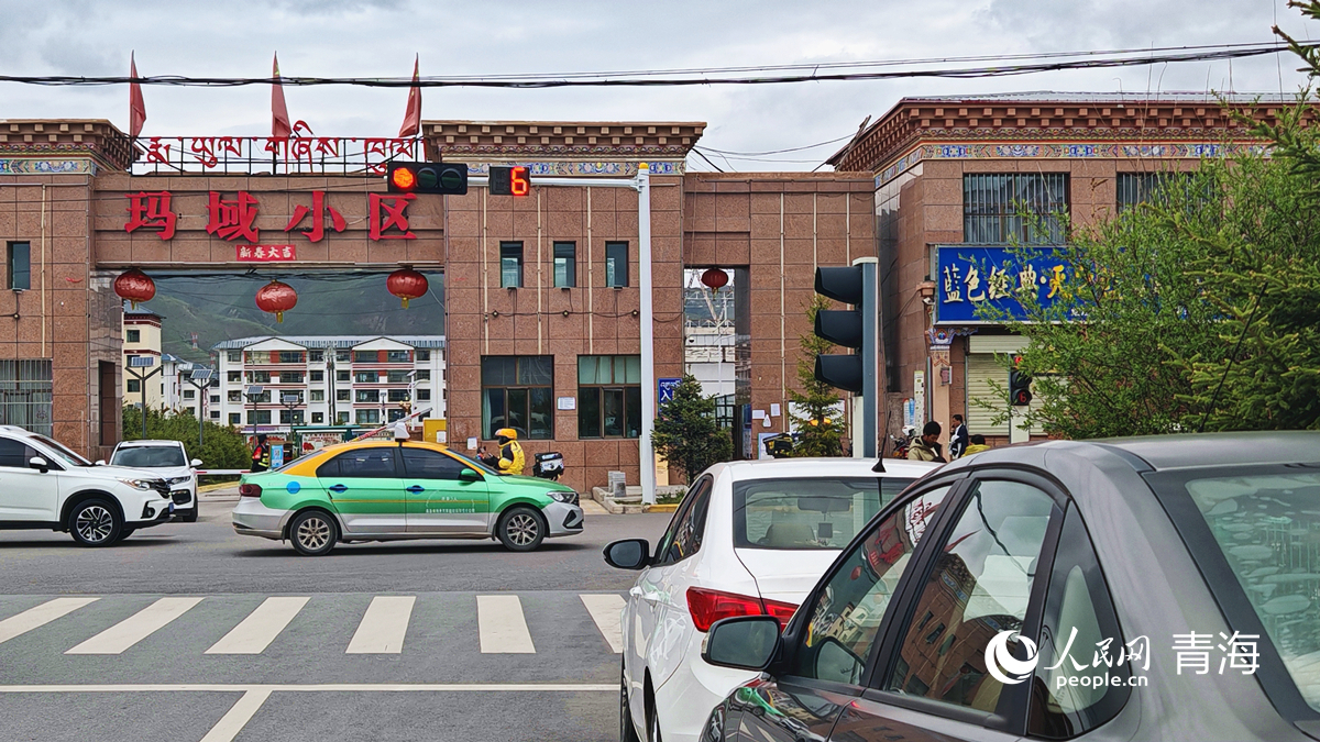 新能源車行駛在瑪沁縣城。人民網(wǎng)記者 楊啟紅攝
