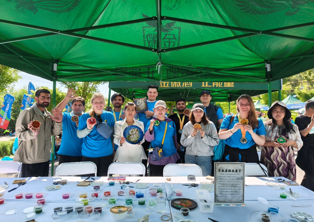 參加比賽的外國友人體驗非遺。 城東區(qū)委宣傳部供圖