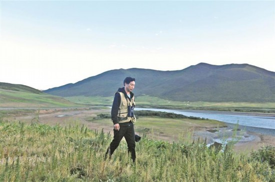 索南多杰在家門口尋找野生動物的身影。青海日報記者 張多鈞 才貢加 攝