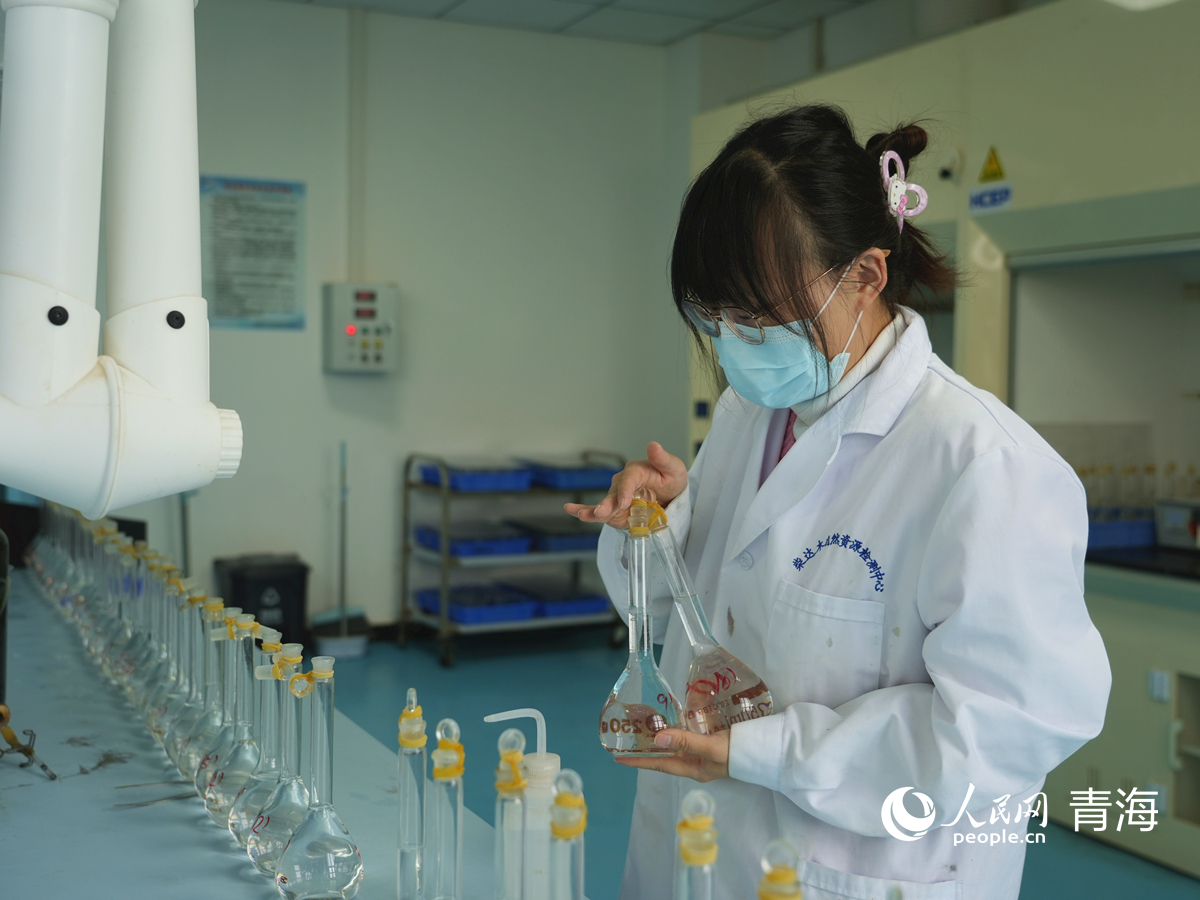 柴達(dá)木自然資源檢測(cè)中心工作人員正在檢測(cè)。人民網(wǎng)記者 楊啟紅攝