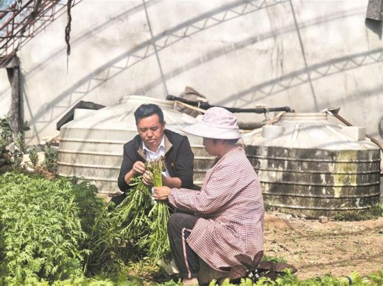 曾廣業(yè)熟門熟路地走進了村民的大棚,和村民嘮家常。青海日報記者 陳晨 攝