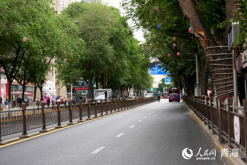 西寧市東關(guān)大街沿線老舊管網(wǎng)更新改造后新鋪的瀝青路面。人民網(wǎng) 馬可欣攝