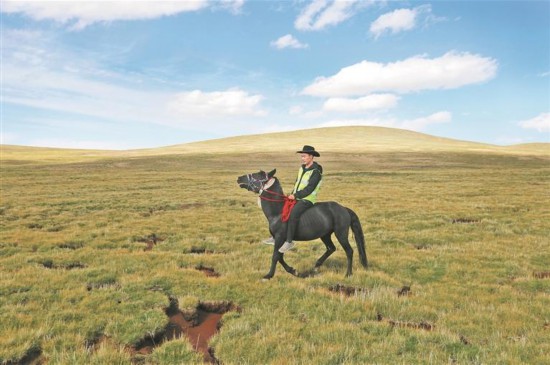 自三江源國(guó)家公園試點(diǎn)至正式設(shè)立,班成日復(fù)一日履行著放牧與巡護(hù)的雙重職責(zé)。他每天騎馬深入濕地草原,清理垃圾、監(jiān)測(cè)動(dòng)物、制止盜獵。