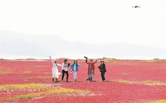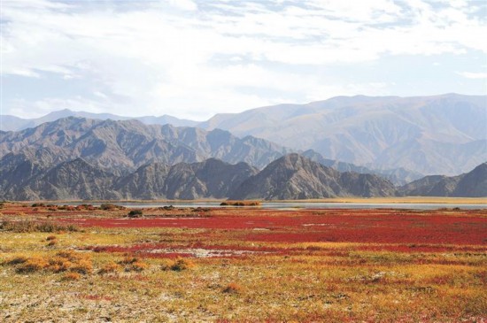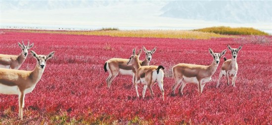 金秋十月,在海西蒙古族藏族自治州烏蘭縣都蘭湖國家濕地公園,湖水波光粼粼,湖岸邊的鹽爪爪草褪去夏日的青翠,披上濃烈的紅妝,宛如一張巨大的“紅地毯”延展開來。一群鵝喉羚踏著優(yōu)雅的步伐,在“紅毯”上留下靈動(dòng)的足跡,其琥珀色的皮毛與紅色草甸形成絕妙映襯。這方天地正以最濃烈的色調(diào),繪就青藏高原絢麗的秋日生態(tài)長卷。文/青海日?qǐng)?bào)記者 李慶玲