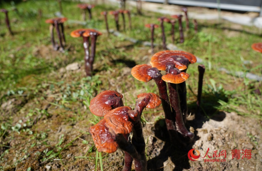 班瑪縣高原特色菌種產(chǎn)業(yè)基地生長的靈芝。人民網(wǎng)記者 甘海瓊攝