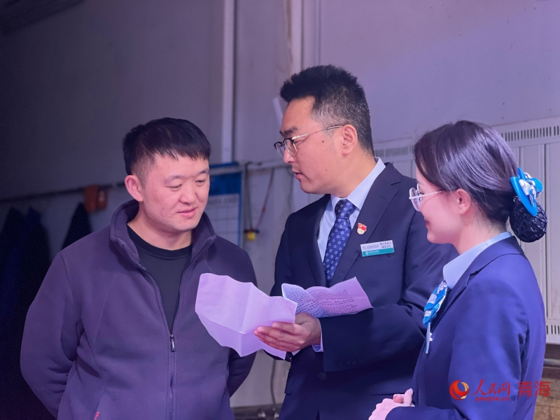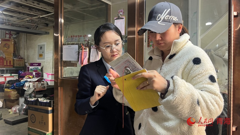 金融機(jī)構(gòu)工作人員了解商戶情況。人民網(wǎng) 顧斐菲攝