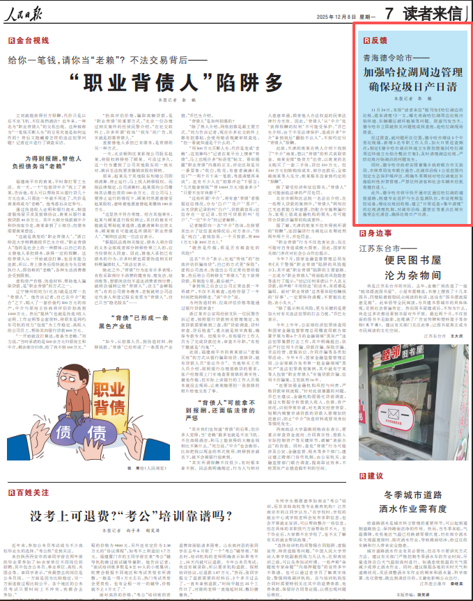 11月24日,本報“讀者來信”版刊發(fā)《哈拉湖邊的垃圾,誰來清理?》一文,曝光青海哈拉湖周邊垃圾污染環(huán)境、車輛碾壓破壞植被等問題。報道刊發(fā)當天,德令哈市立即就相關(guān)問題組成核查組,赴哈拉湖現(xiàn)場排查。