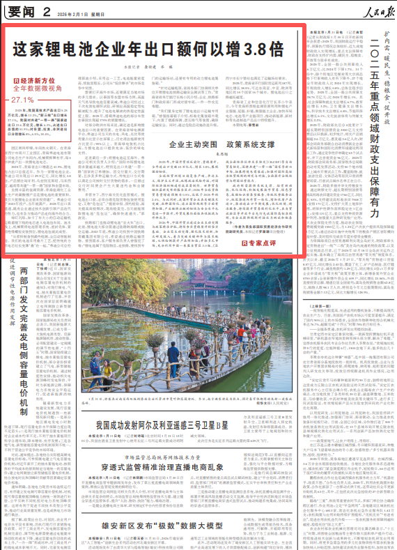 原標(biāo)題:這家鋰電池企業(yè)年出口額何以增3.8倍(經(jīng)濟(jì)新方位·全年數(shù)據(jù)微視角)